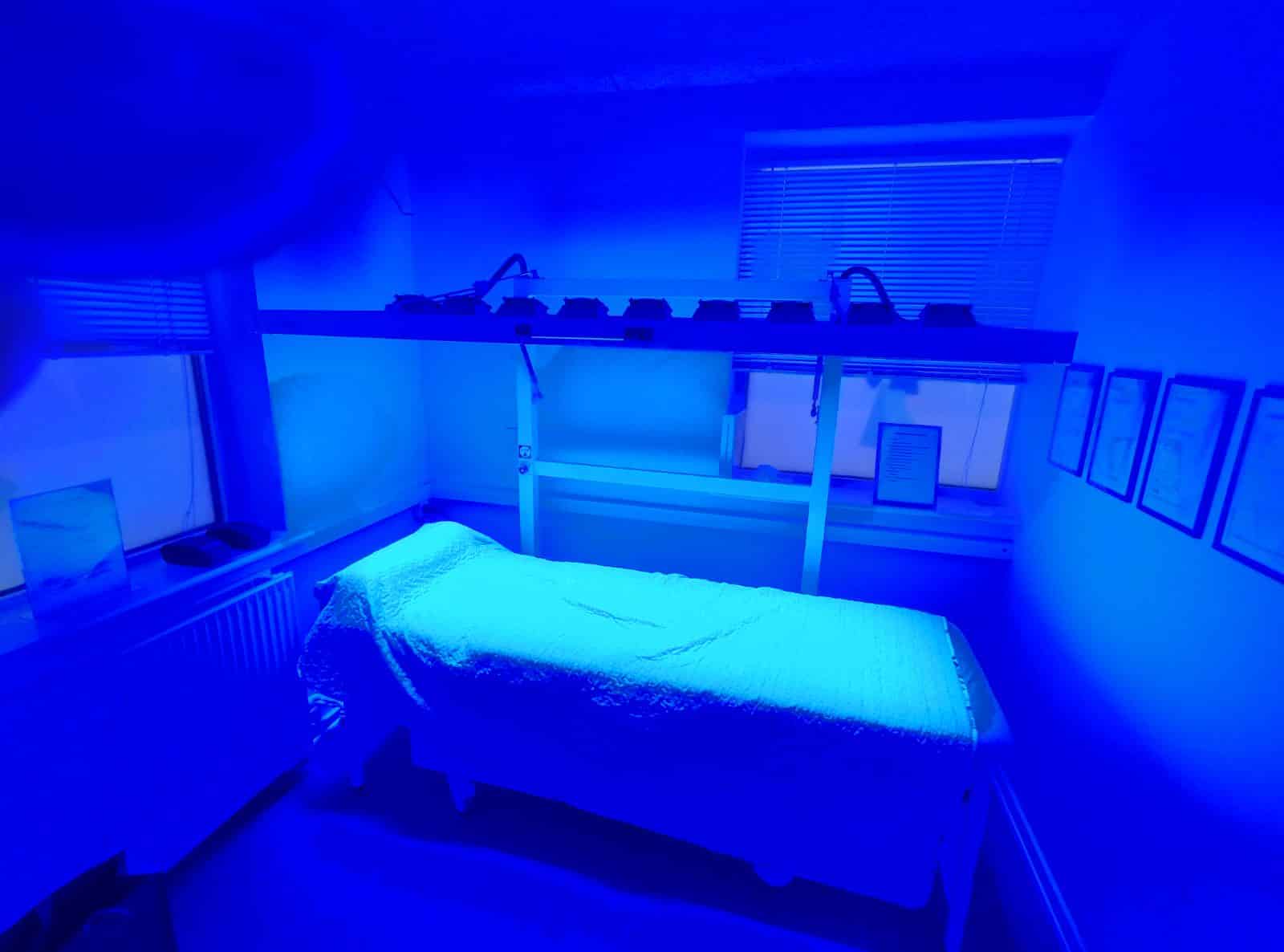 Anvend Blue LED Therapy 4 gange om ugen à 15 minuttters varighed de første 4 uger og herefter de næste 2 uger 2 gange om ugen à 15 minutters varighed – i alt 20 gange lys.